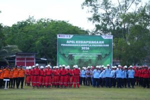 Komitmen ini dibuktikan lewat dukungan penuh Kilang Dumai sebagai tuan rumah pelaksanaan Apel Siaga Pengendalian Karhutla Tahun 2026 di Dumai yang dilaksanakan di Lapangan Bapor Komplek Perumahan Pertamina (Komperta) Bukit Datuk, Minggu 26 April 2026.