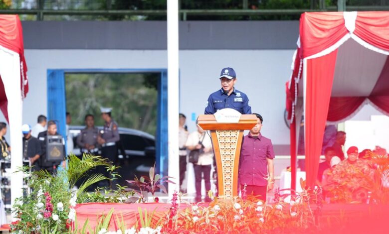 Menteri Lingkungan Hidup/ Kepala BPLH, Hanif Faisol Nurofiq, memimpin Apel Kesiapsiagaan Penanganan Karhutla 2026 Kota Dumai di Lapangan Komperta Bukit Datuk, Minggu (26/4). Apel diikuti ratusan personel gabungan yang terdiri dari TNI, Polri, BPBD, Manggala Agni, serta dihadiri perwakilan berbagai korporasi. Kegiatan ini turut dihadiri oleh Wakil Wali Kota Dumai Sugiyarto, Kapolres Dumai, Dandim 0320 Dumai, serta sejumlah undangan lainnya