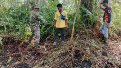 RUPAT (Thekingbingal) – Babinsa Koramil 04/Rupat, Pelda S. Sinaga, bersama masyarakat melaksanakan kegiatan patroli kebakaran hutan dan lahan (Karhutla) di…