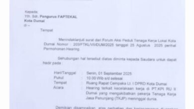 Surat RDP Dari DPRD Dumai DUMAI (Thekingbingal) – Gelombang desakan agar kasus kecelakaan kerja maut di PT Kilang Pertamina Internasional…